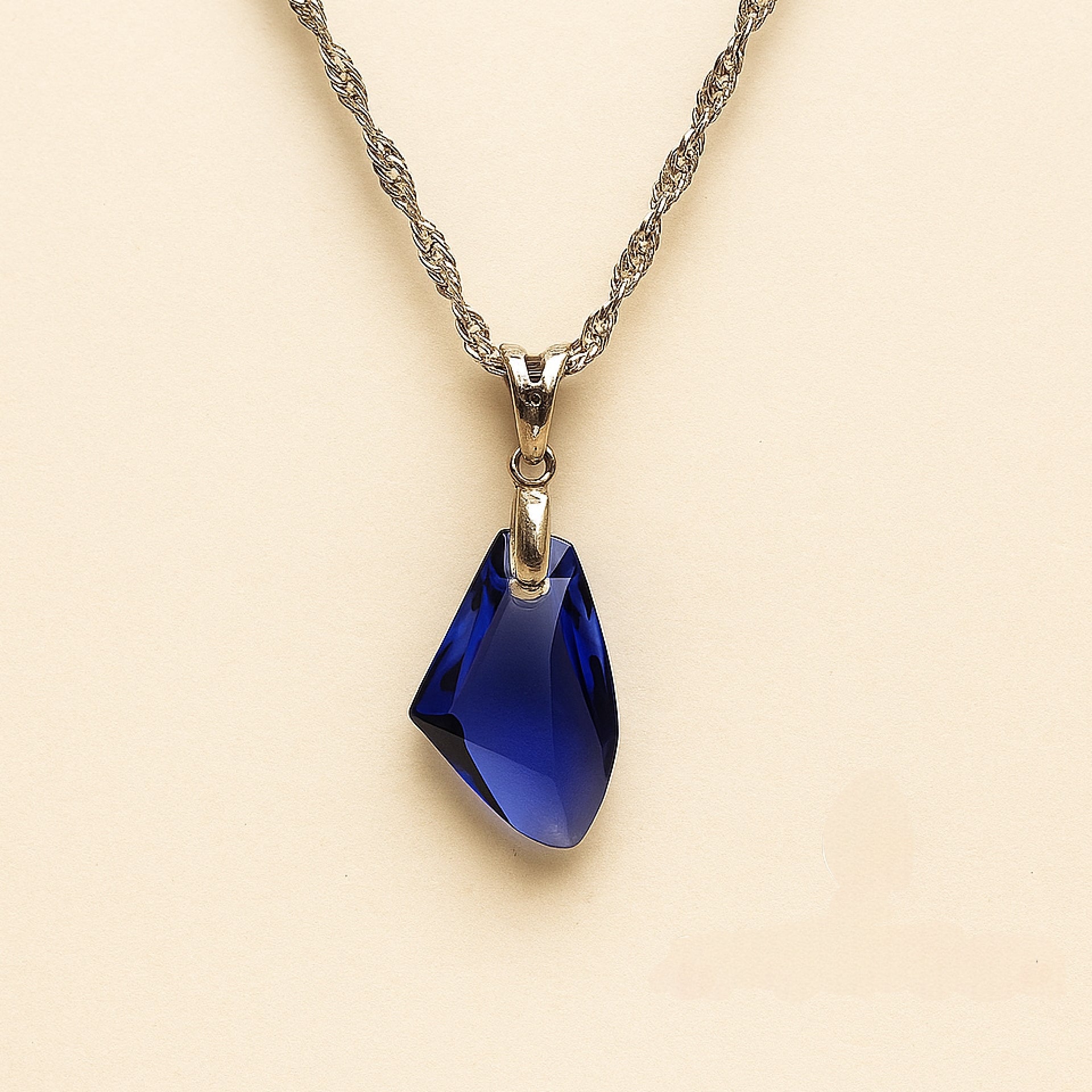The Vanya Crest pendant captures a bold yet graceful charm, featuring a striking deep-violet crystal cut in an asymmetric crest silhouette. Suspended from a sturdy, intricately braided chain and set in premium 92.5 sterling silver, the design radiates modern sophistication. Its rich gemstone hue symbolizes creativity, intuition, and inner strength, while the precision-cut facets reflect light from every angle for a dazzling effect. Perfect for making a statement, this pendant blends elegance with a touch of mystique, elevating any outfit with effortless allure.